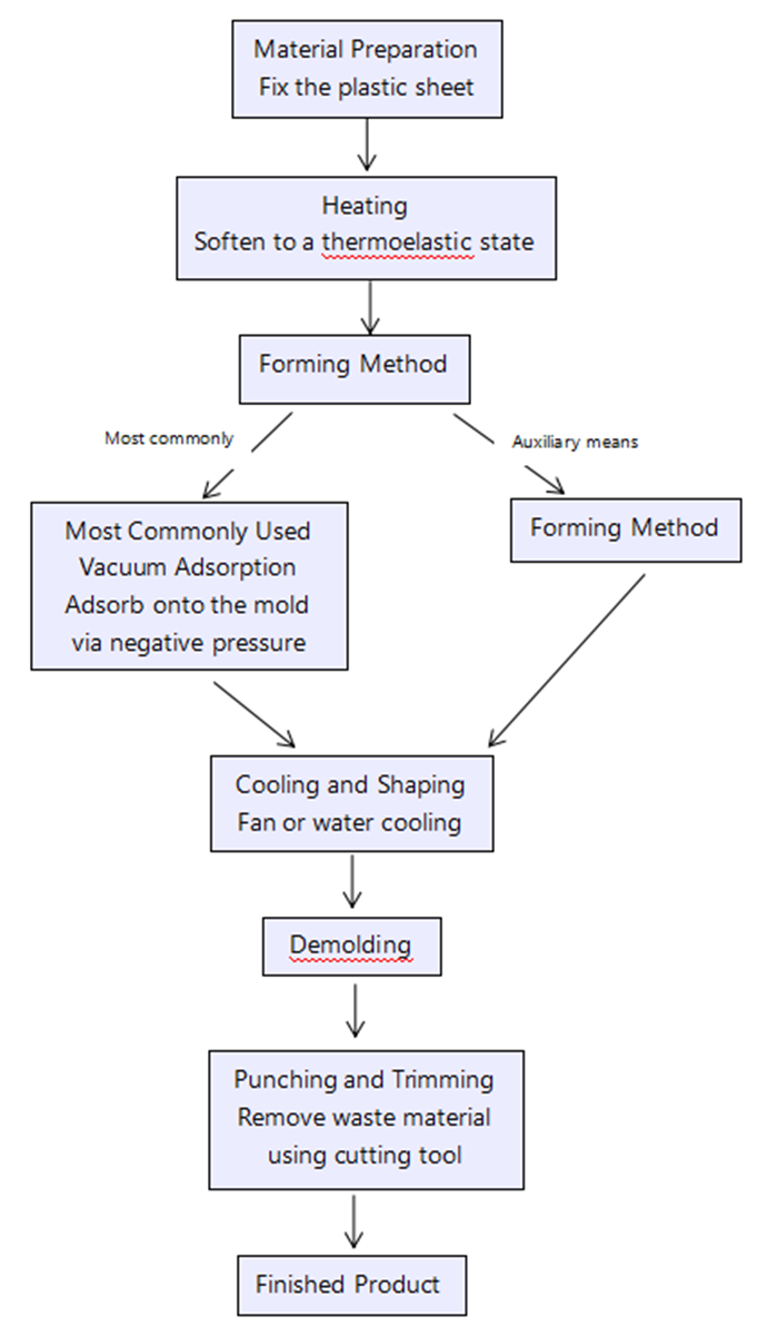 หลักการหลัก: ให้ความร้อนและทำให้แผ่นพลาสติกนิ่มลง จากนั้นใช้สุญญากาศเพื่อดูดซับลงบนพื้นผิวแม่พิมพ์ และจะกลายเป็นรูปร่างหลังจากเย็นลง